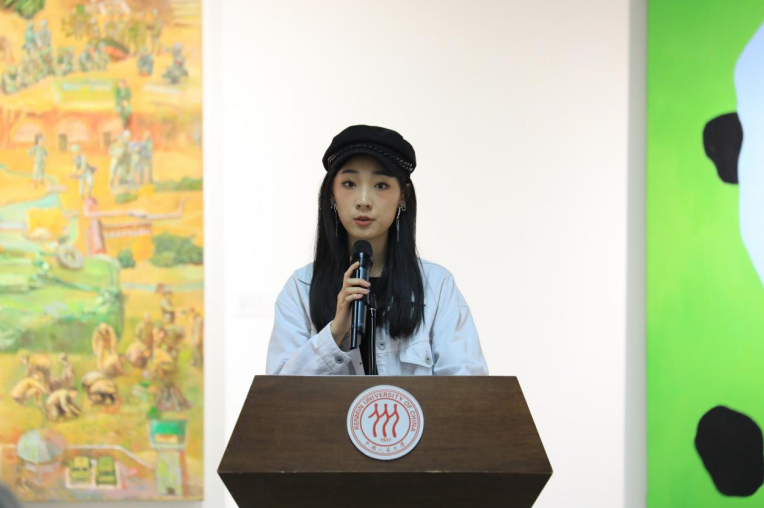 2019级绘画系毕业生代表亓百婷回顾了自己大学四年的生活,表达了自己对未来的展望。并祝愿老师和同学们能够平安顺遂,不忘初心,在专业领域有所建树,以自己喜欢的方式度过一生。