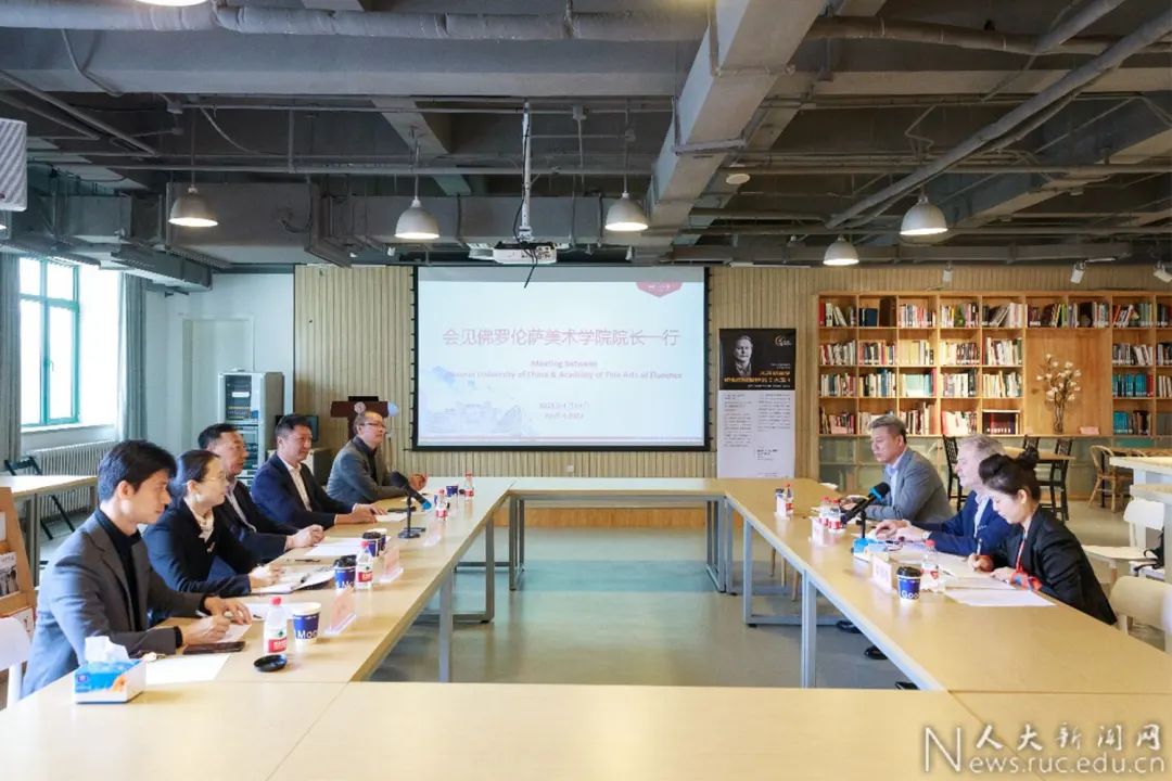 4月14日,中国人民大学党委书记张东刚会见佛罗伦萨美术学院院长克劳迪奥·罗卡(Claudio Rocca)教授,双方就人文艺术交流互鉴、创新中欧校际务实合作机制与拓宽全球艺术类高质量人才培养体系等方面进行交流。