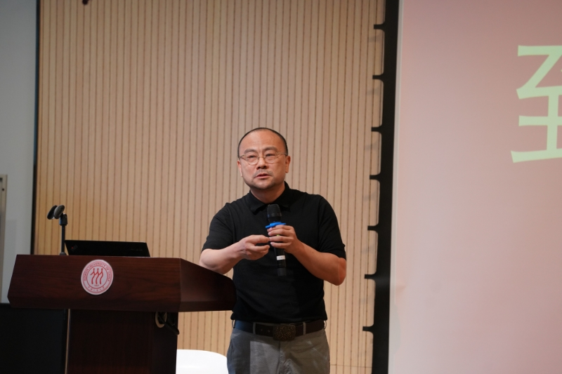 设计系教授陈炯以《扎根田野,躬耕教坛》为题,讲述了他带领“艺乡建”团队开展艺术振兴乡村实践的故事。他结合多年深耕田野的经历,分享了个人对于乡村振兴内涵的认识,讲述了在云南大理等地的考察经验,以及与基层党支部和村两委的互动。陈炯认为,理论知识和实践经验的结合对于培养优秀设计人才至关重要。