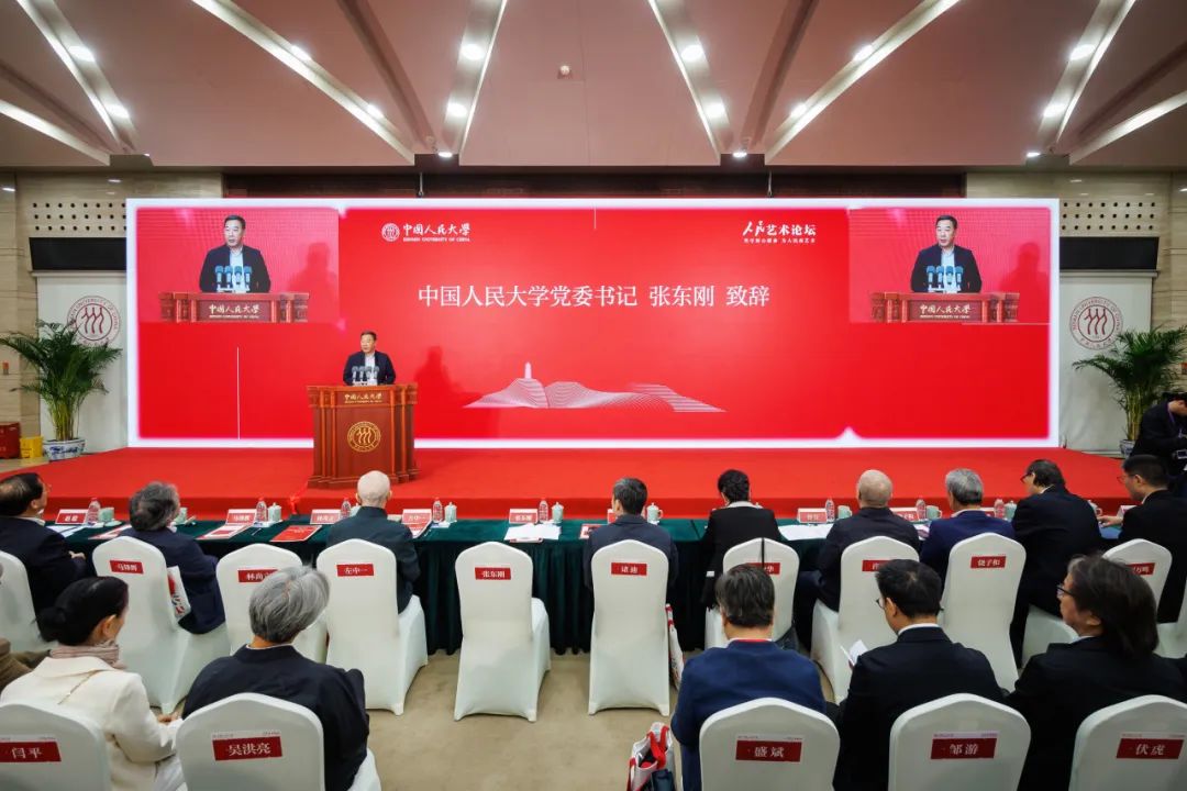 张东刚指出,作为中国共产党创办的第一所新型正规大学,中国人民大学有着光荣的艺术传统和文艺血脉,始终坚持“为人民而艺术”的教育与创作理念,培养了一大批为党和国家的文艺事业作出杰出贡献的优秀艺术家,形成了艺术教育“古今贯通、艺理融通、知行会通、中外联通”的底色。学校创设人民艺术论坛,是深入学习贯彻习近平文化思想的重要举措,也是推动建构中国艺术学学科自主知识体系的题中要义。践行“为人民而艺术”,要秉持人民立场,凸显人民的主体地位;厚植人民情怀,饱含对人民的深情厚谊;创作精品力作,满足人民精神文化需要;落实立德树人,办好人民满意的艺术教育。中国人民大学愿与社会各界一道,牢记嘱托、携手共进,以人民为中心,把握艺术的时代使命;遵循人本理念,确立艺术的价值追求;提升人文素养,厚植艺术的持久动能,为丰富人民精神文化生活,繁荣发展文化事业,夯实强国建设、民族复兴的精神基底贡献力量。