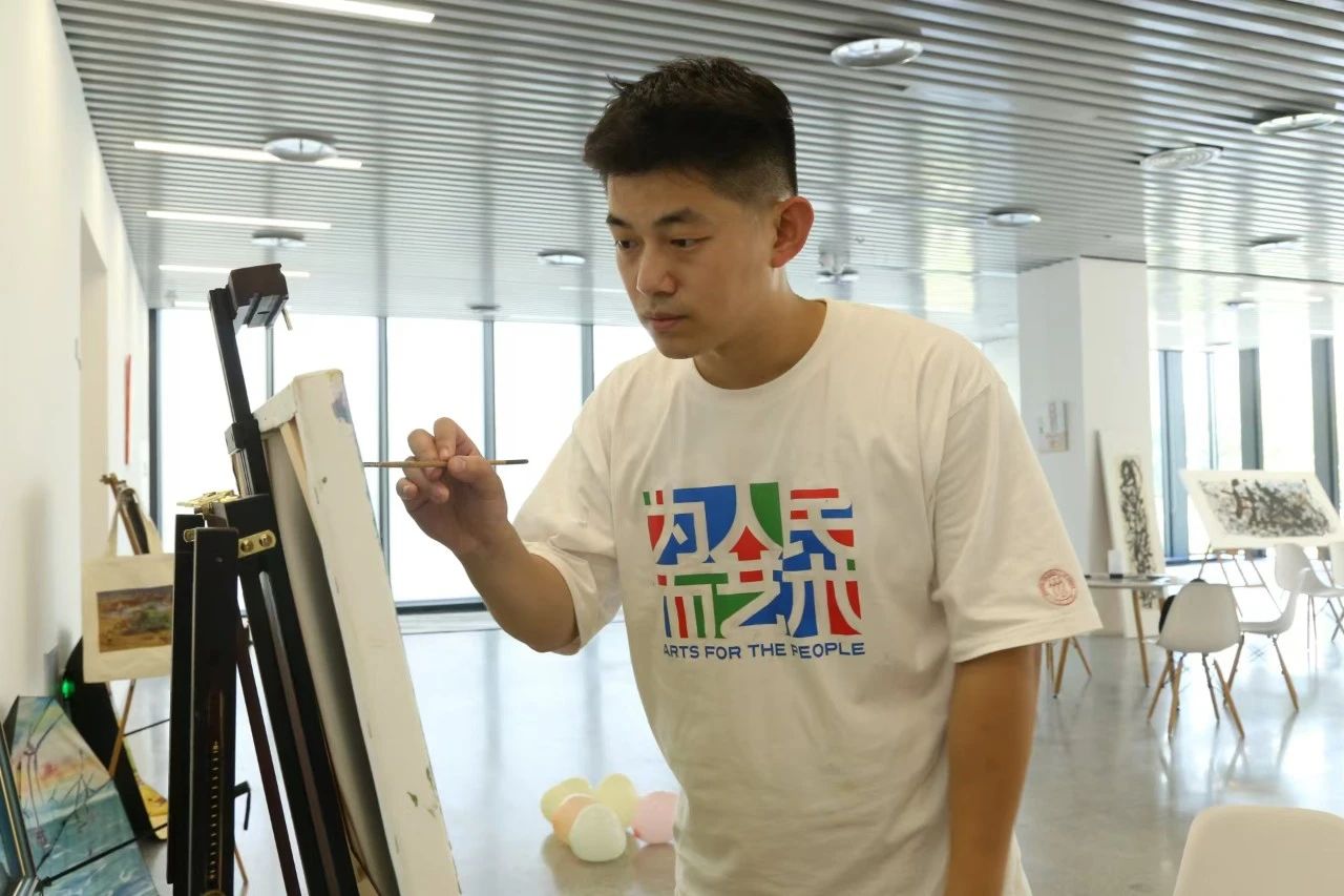 “这是我们学院的院衫,‘为人民而艺术’是人大艺术学子铭记于心的宗旨。”史惠青介绍道。在人大学习的几年时光中,他逐步摆脱了从前“为艺术而艺术”的认知,目光在老师们的悉心教导和学校丰富的社会实践活动中向广阔的现实社会延伸,心也朝着广大人民群众的方向坚定扎根。