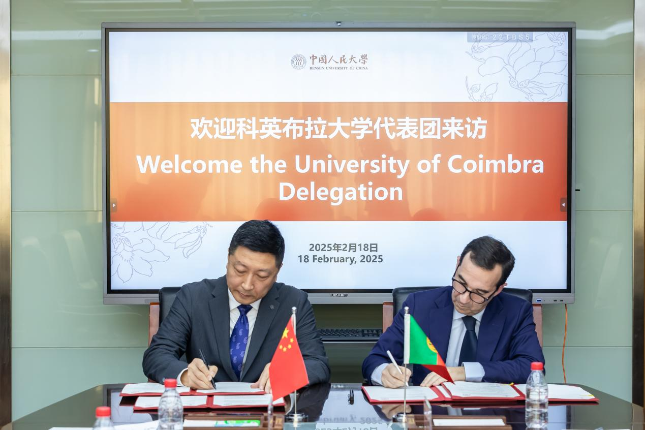 2月18日上午,科英布拉大学副校长若昂·努诺·卡尔瓦奥一行来访中国人民大学,签署168开奖网