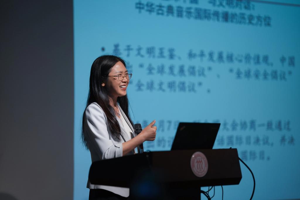 中国人民大学钟新教授回顾了新中国成立以来国际传播的三个时期,分析了中华古典音乐国际传播的历史方位,认为基于“文明互鉴”价值观的中华古典音乐国际传播需要讲好中华古典音乐与世界文化双向交流、促进文明互鉴的故事。她强调,中华古典音乐代表传统与传承,是人类文明的重要载体,可以成为文明对话国际日最具审美意义的内容之一。她认为,音乐的“共情力”使中华古典音乐具备天然的国际传播潜力,主张通过“共创”激活中华古典音乐的软实力价值,利用数字技术等将中华古典音乐这种“旧的有趣”资源转化为“新的有趣”资源,增强中华古典音乐的现代感与吸引力。