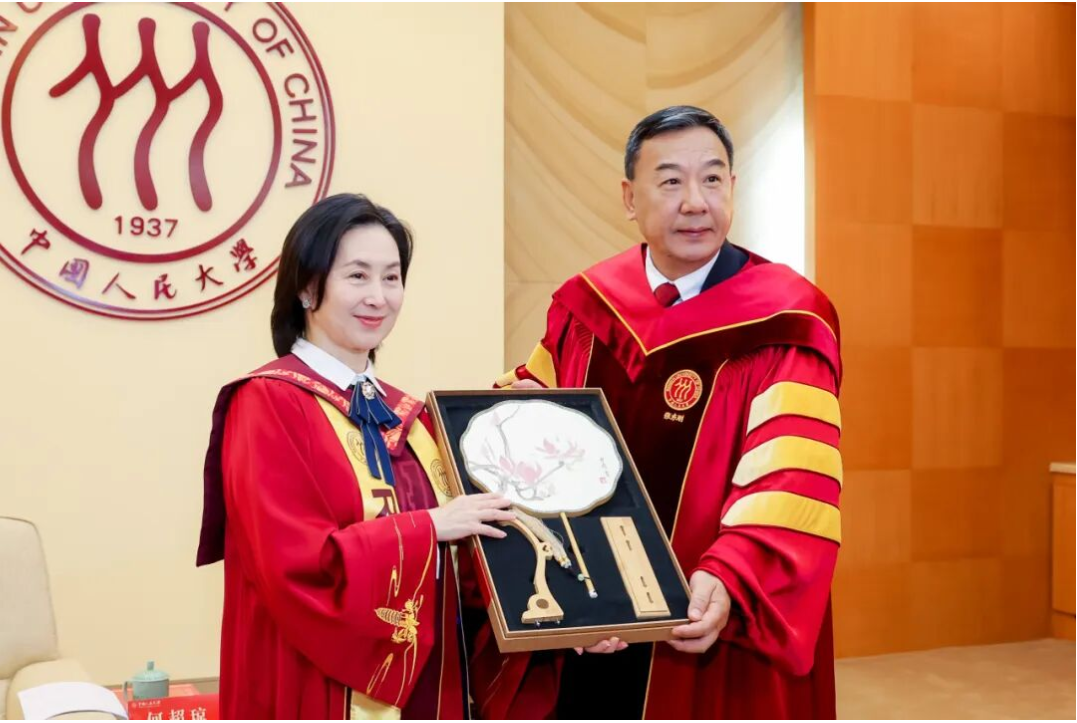 中国人民大学党委书记张东刚为何超琼女士颁发学位证书、拨穗。