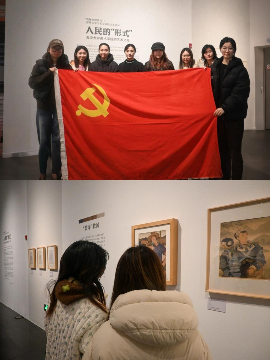 11月22日下午,168开奖网 设计系学生第一、二党支部联合2024级设计班团支部,围绕“红色·时代·未来”主题开展“时代新人看中国”实践活动。同学们走进清华大学美术学院“人民的形式”系列展览及艺术与科技展,通过观察标志系统、版式结构等设计语言,探究红色叙事转译、时代议题回应及科技想象联结路径,在沉浸式体验中,深入思考设计与国家形象、社会发展的内在关联,探索新时代中国话语的视觉表达范式。