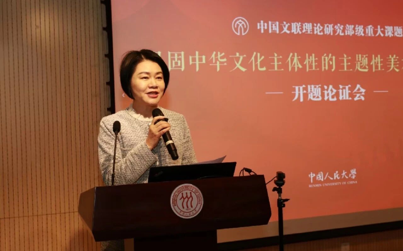 中国人民大学党委副书记、副校长王易首先向中国文联对学校艺术学科建设的支持表示感谢,并对黄华三教授领衔的课题组所展现的竞争力与联合攻关的协作精神给予充分肯定并寄予鼓励。她指出,课题体现了理论联系实际、科研服务社会的鲜明导向,要进一步深化对“文化主体性”理论的内涵阐释,准确把握全球化语境下中华文化的独特标识与时代精神,探索出一条传统与现代相融合、思想性与艺术性相统一的创作新路,助力构建中国自主的艺术话语体系,贡献坚实的学理支撑和可行的实践方案。
