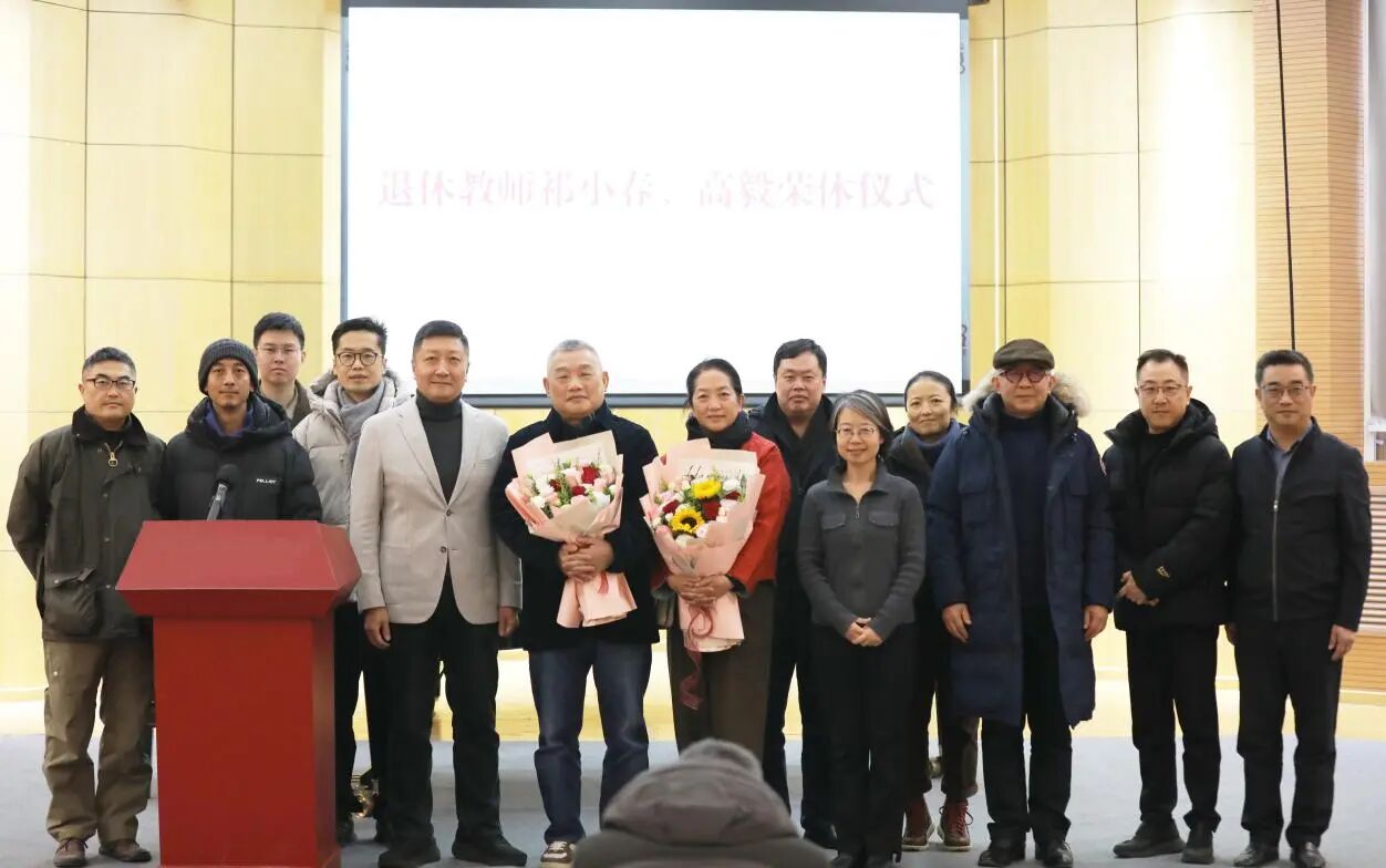 学院为退休教师祁小春和高毅举办了荣休仪式。学院领导为两位教师献上鲜花,代表学院向两位在艺术教育领域耕耘多年、培养了一大批优秀艺术人才、为学院发展做出突出贡献的教师,致以最诚挚的敬意和最美好的祝福。