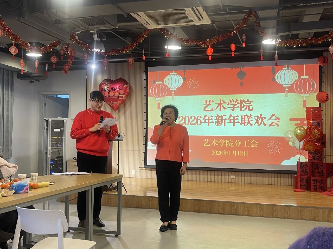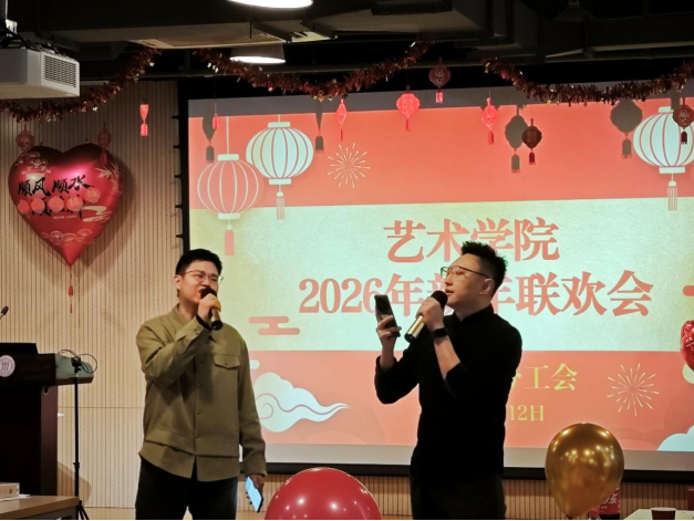 本次联欢会由音乐系副教授周源和设计系教师刘绍龙联袂主持,他们风趣幽默、妙语连珠,为晚会增添了欢乐氛围。