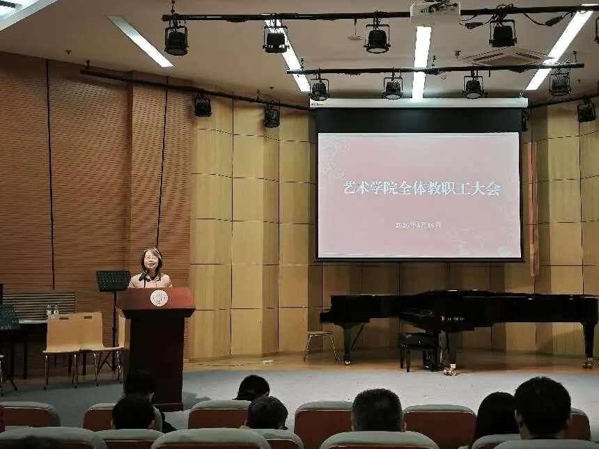 在音乐厅召开全体教职工大会。会议旨在传达学校重要文件精神、部署学院近期重点工作,学院全体教职工参加会议,会议由学院党委书记付春梅主持。