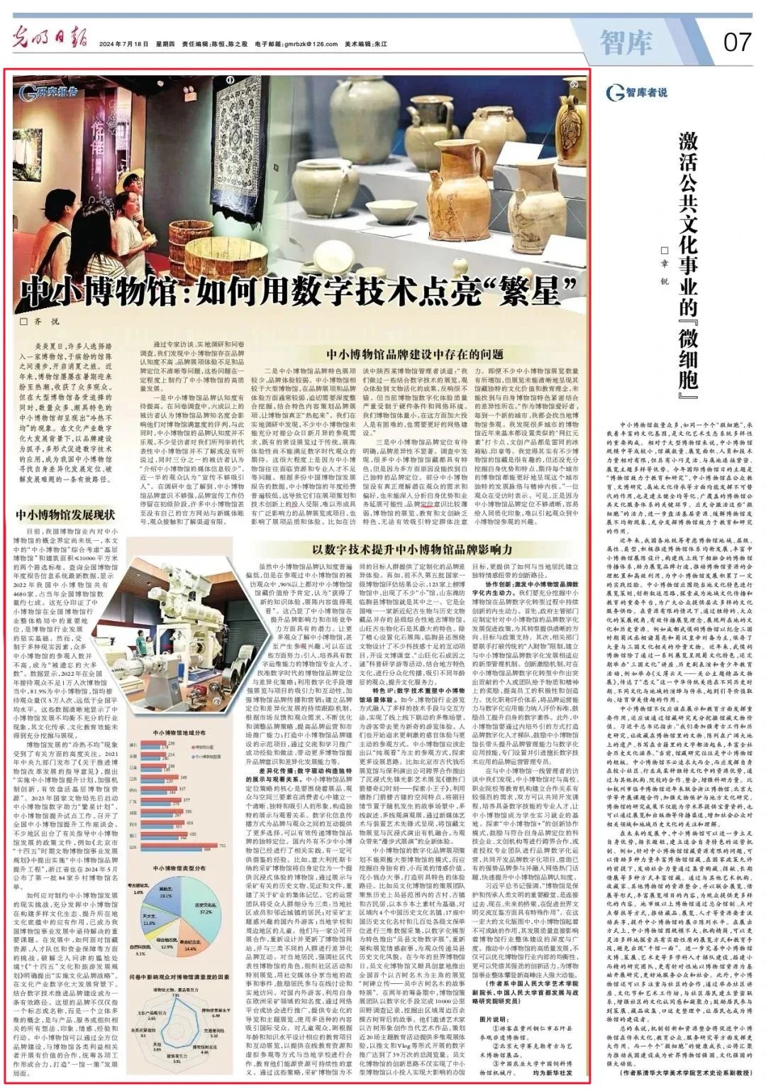 近日,光明日报理论版 2024 年热门文章盘点出炉,我院副院长、首都发展与战略研究院研究员齐悦所著文章《中小博物馆:如何用数字技术点亮 “繁星”》荣登2024年度热门文章“智库”板块。该文聚焦于中小博物馆如何借助数字技术实现新发展,在众多优秀作品中显得独具慧眼,其提出的观点和思路为博物馆行业发展提供了重要参考。