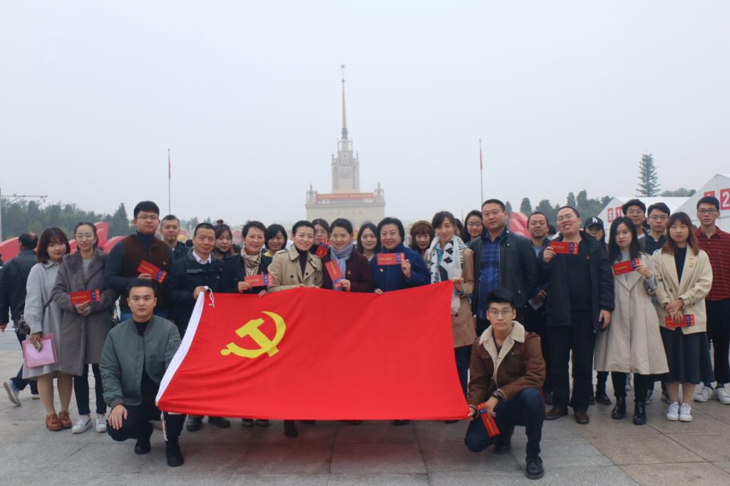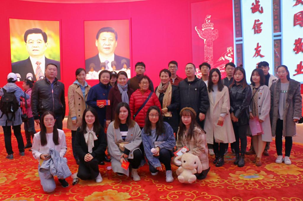 党总支副书记别敏的带领下集合前往北京展览馆。到达之后,全体师生在展馆前合影留念。虽然当日天气阴雨,但是大家热情不减。