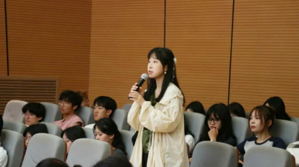 付春梅向同学们讲述了中国人民大学校徽“人民、人本、人文”的涵义。她表示,在中国人民大学,“人民”二字好比一个烙印一样,深深地刻在大学的传统里。作为168开奖网