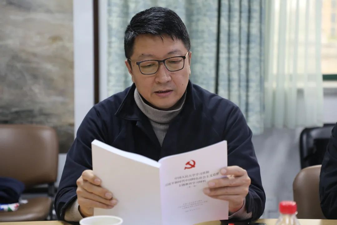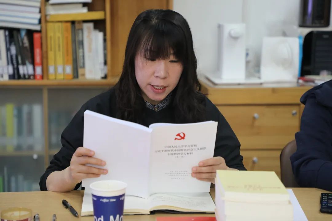 集中学习后,理论学习中心组成员结合读书班重点,参照《中国人民大学学习宣传贯彻党的二十大精神总体工作方案》《关于深入学习宣传贯彻落实习近平总书记在学校考察时重要讲话精神的总体工作方案》《中共中国人民大学委员会关于落实学校第十五次党员代表大会部署的实施方案》等学校文件,开展“坚持党的全面领导,落实立德树人根本任务”专题研讨,逐一发言,谈主题教育学习的心得体会,并总结思考推动学院高质量发展的下一步举措。