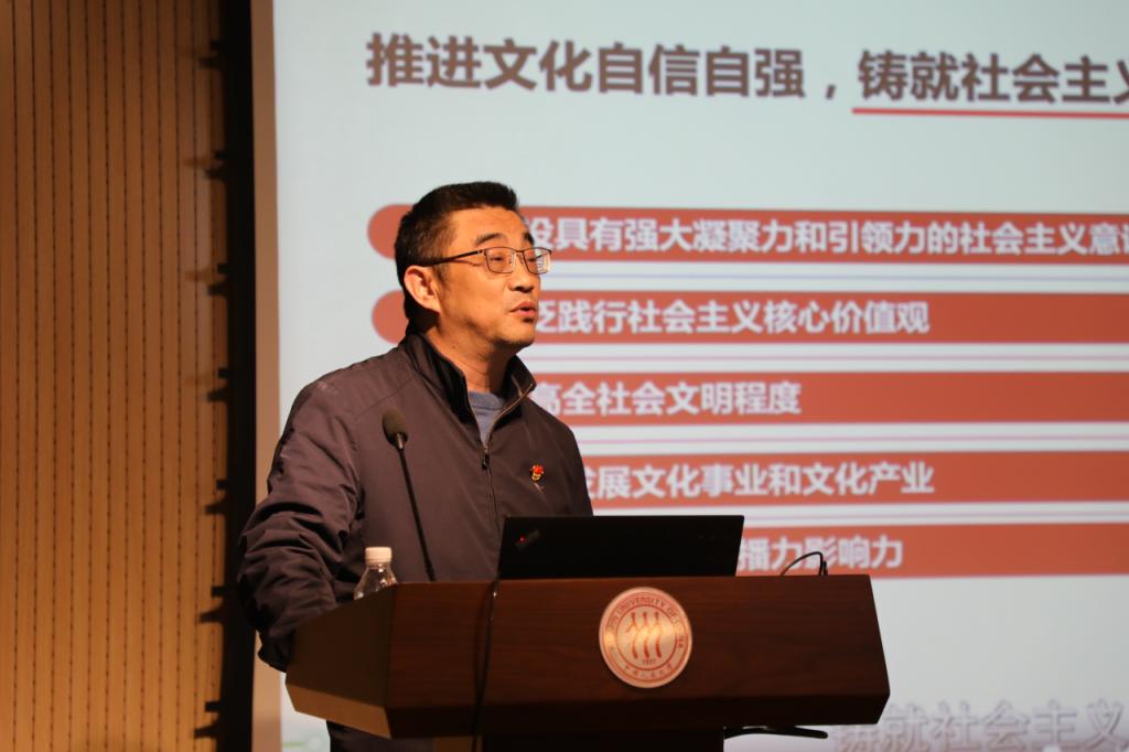 本次党课中,顾亚奇教授详细阐述了“文艺的人民性”的内涵,在围绕由其主讲的党课大赛获奖作品视频进行讲解的同时,又结合当代艺术发展现状,增添新感悟、补充新事实,既回顾历史,又立足当下。