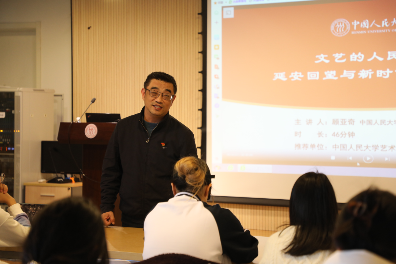 最后,顾亚奇教授向大家提出学习要求,希望所有学员课后用心阅读毛泽东同志在延安文艺座谈会上的讲话和习近平总书记在文艺工作座谈会上的讲话原文,认真思考“中国人民大学艺术学子如何践行文艺的人民性”这一重要命题。