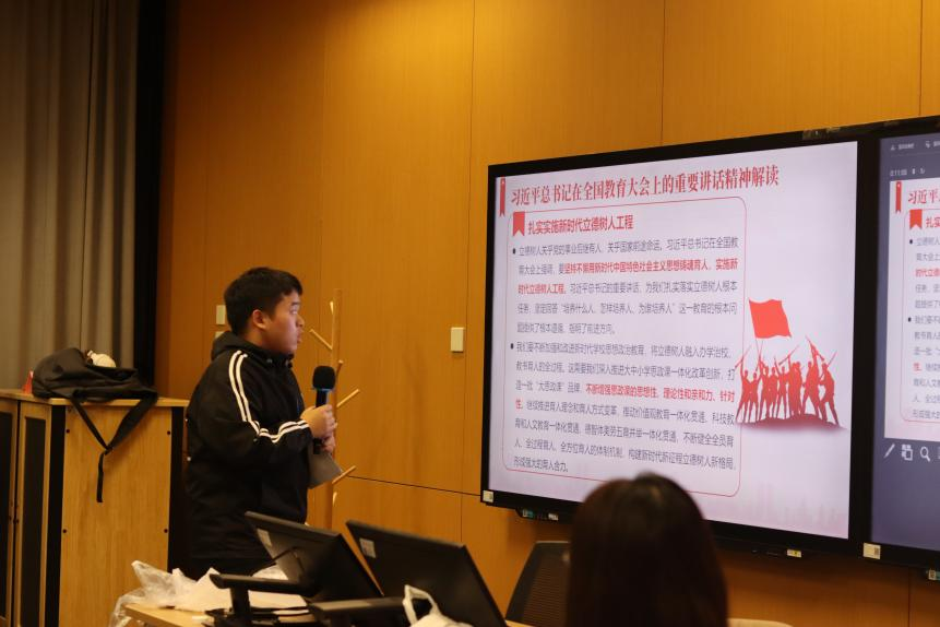 设计系学生第一党支部与商学院2022级硕博连读研究生班党支部在中国人民大学学生党建促进会的支持下,共同举办“深入学习贯彻习近平总书记重要讲话和全国教育大会精神”主题党日活动。本次活动共分为破冰环节、解读领学、小组展示和知识竞答四个环节。活动由校学生党建促进会组织联络部周殿博主持,校学生党建促进会研究室彭卓进行主题宣讲。
