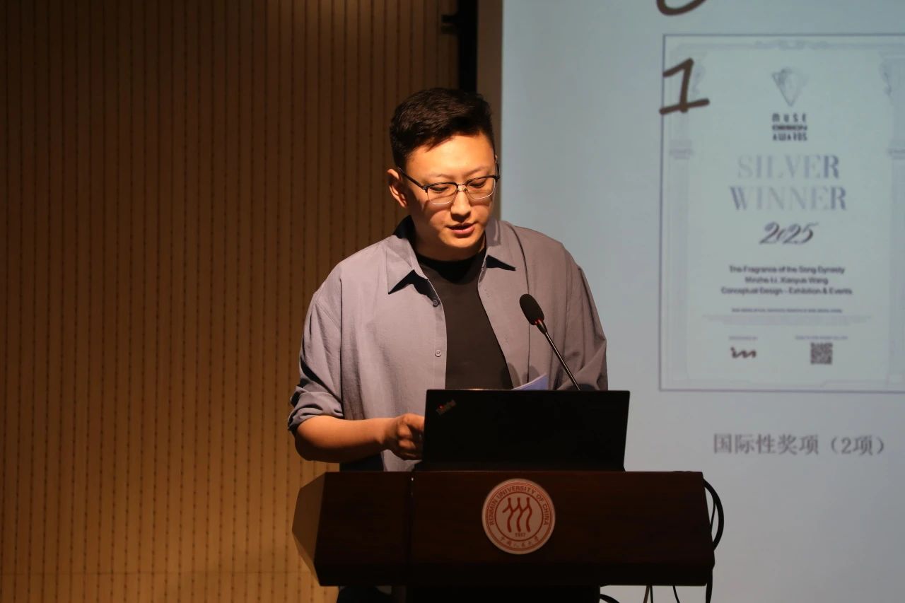 设计系教师王晓骞以《用健康的体魄点燃艺术的信仰——在奔跑中前行,在设计中育人》为题,讲述了他以奔跑为始、以创作为翼、以校园为场的育人故事。他始终相信,艺术的根基在人民,而人民的力量来源于强健的体魄与自由的精神。他带领学生投身“AI+文化遗产”创研课程建设、中国人民大学通州校区建设和“陕公书屋”等项目,完成中国考古博物馆展陈设计、宁海乡村振兴艺术活化,以健康社会为目标,用艺术回应时代。