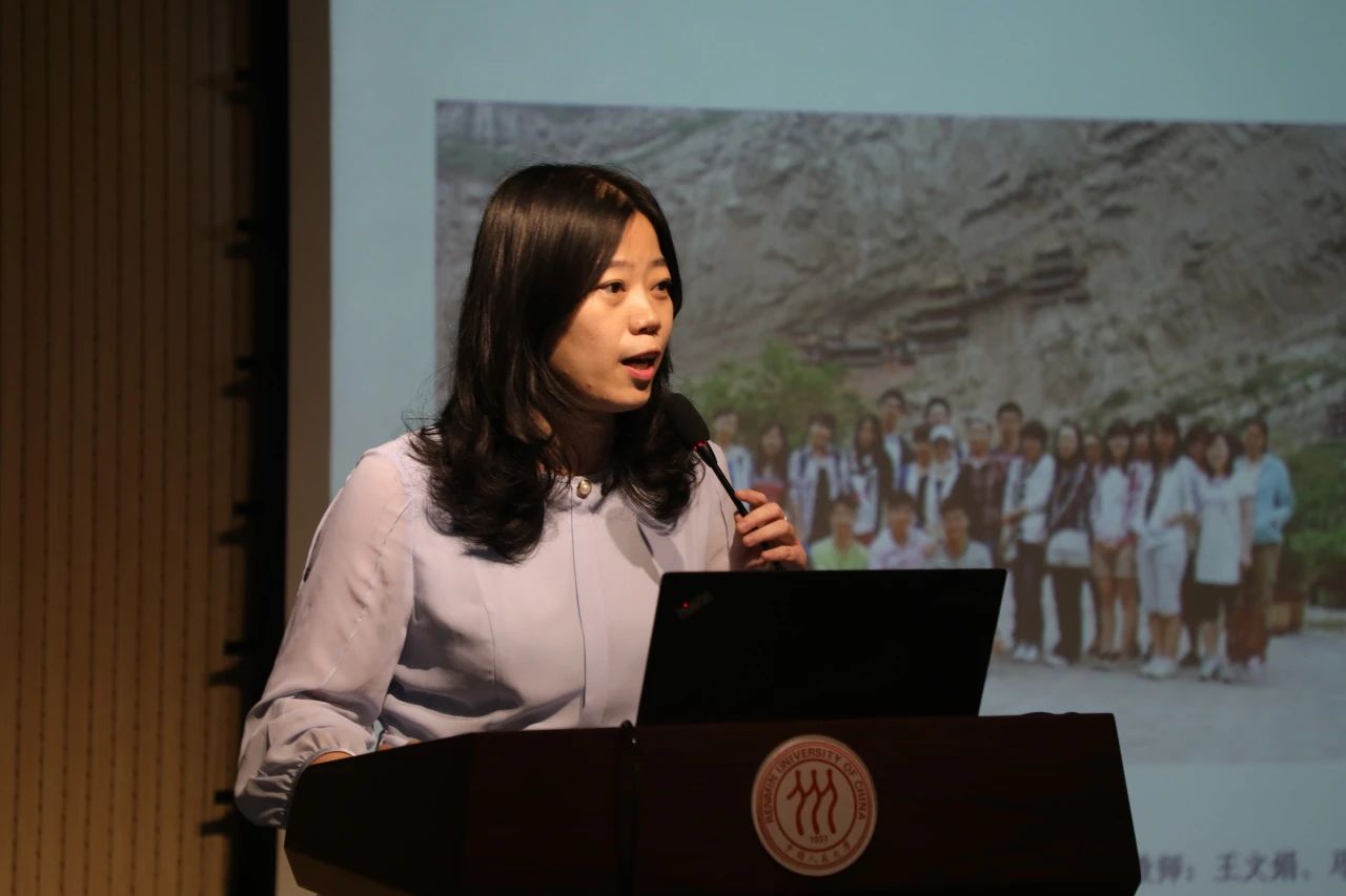 艺术学系教师陈琳琳以《行走在三晋大地上的艺术史课堂——实践教学育人故事分享》为题,讲述了她在2023年暑假带领艺术学系本科生赴山西省开展历时11天的实践教学活动,将艺术史的课堂从学校搬到田野,从PPT图片转移到实物遗存,让学生真切体验艺术史的“原境”。通过这次考察,学生不仅提高了田野考察的科研能力,更加深了对中华优秀传统文化的理解,还增强了传承弘扬中华优秀传统文化的责任感与使命感。
