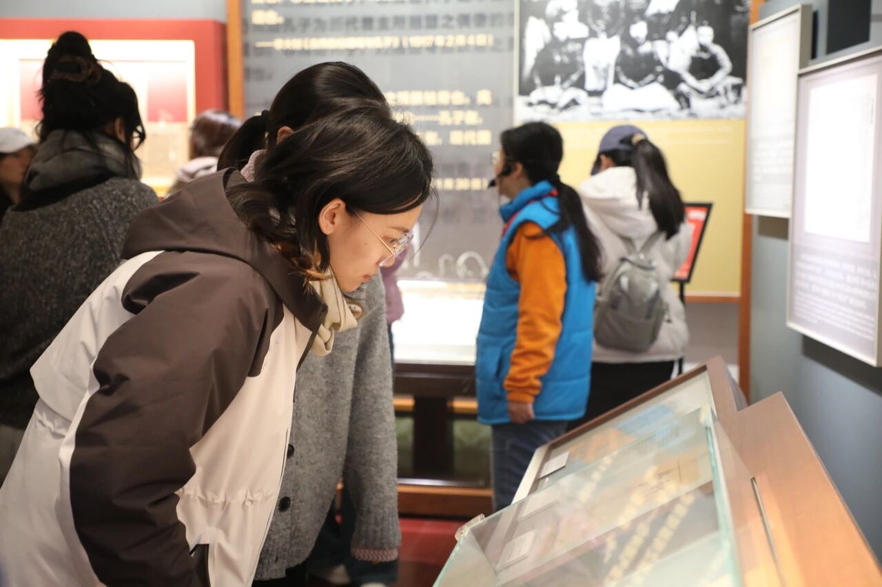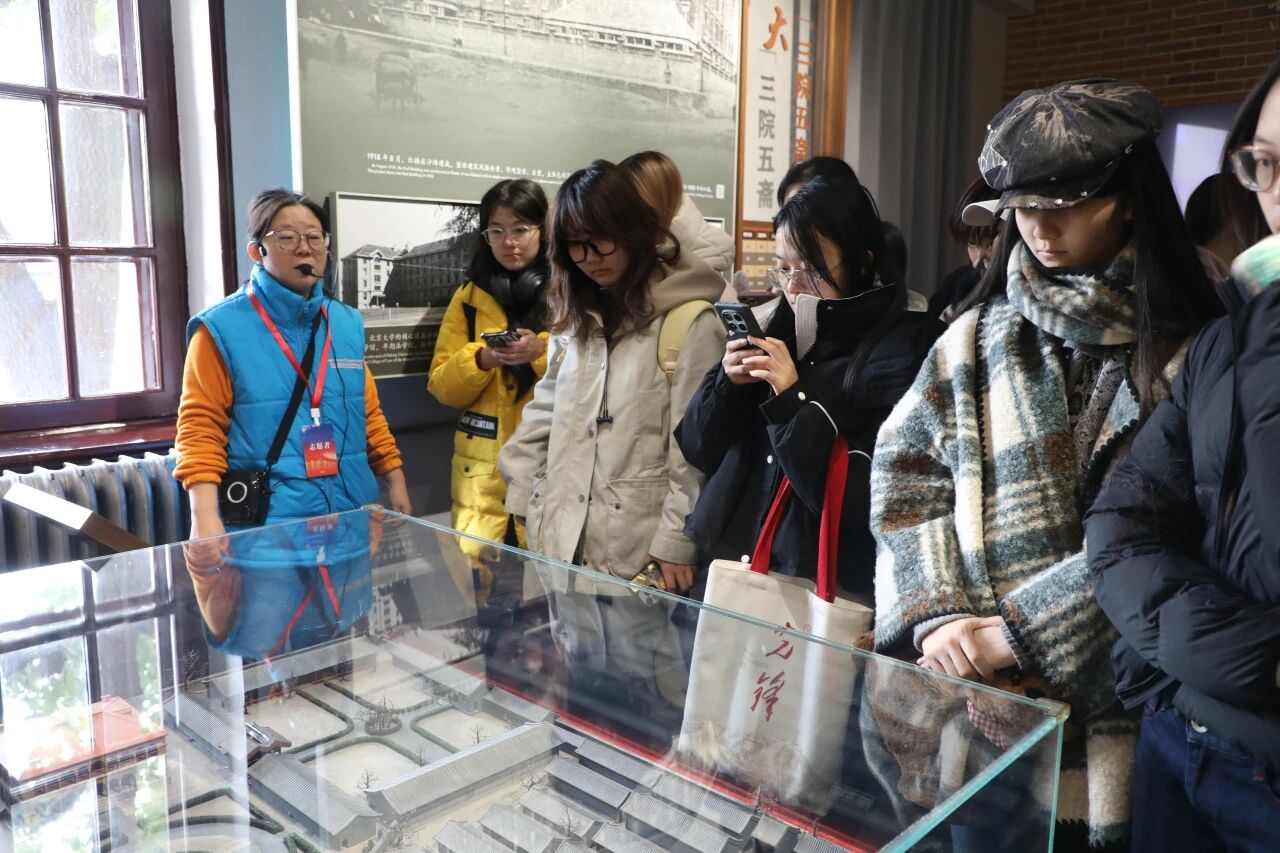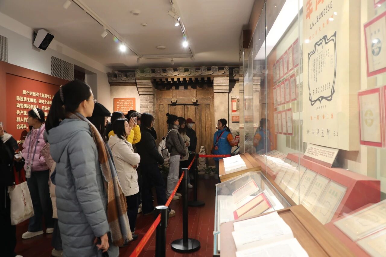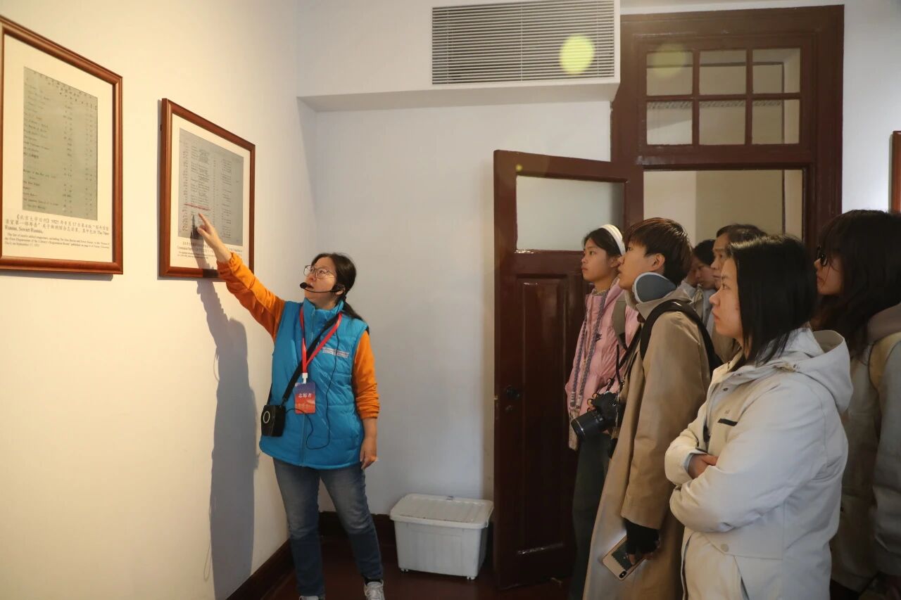 “站在先辈们传播真理的地方,真切体会到学院‘为人民而艺术’理念的历史源头。”绘画系学生第一党支部党员史惠青在展品前驻足良久。在复原场景大教室里,党员、团员们端坐着聆听讲解,当得知这里曾见证青年学子为国家出路奔走求索的历程时,2025级绘画班团员陈楚仪感慨:“课本里的‘觉醒年代’在此变得立体可感,更懂肩头的传承之责。”