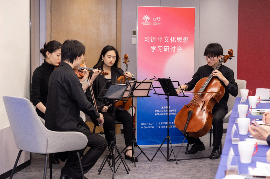 音乐系获奖学生组成的均衡四重奏在会议前奉献了精彩的音乐表演,助力中欧人文艺术交流绽放光彩、奏响和谐。