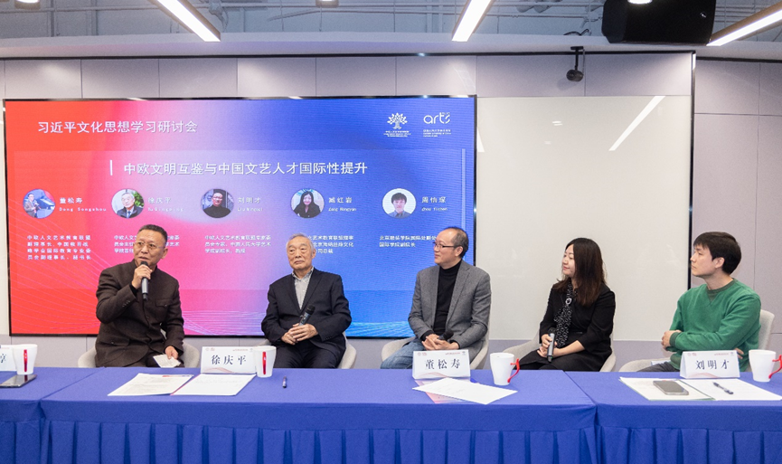 副院长刘明才教授,联盟理事会理事、北京海纳丝路文化发展有限公司总裁臧红岩,北京服装学院国际处副处长、国际学院副院长周怡琛,围绕中欧文明互鉴与中国文艺人才国际性提升这一主题展开深入对话。