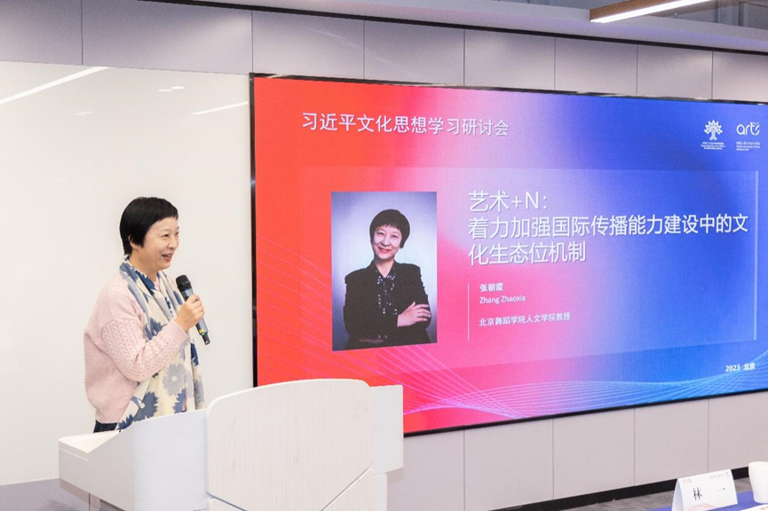 林一教授在《学习习近平文化思想,促进中欧人文艺术教育交流》的发言中强调,习近平文化思想是一个博大精深的思想理论体系,是我们做好对外文化交流工作的指导思想和理论基础,既需要有针对性的学习又需要融会贯通到实践中,特别是要深刻领会其内在的逻辑。她表示,习近平总书记一直强调中欧关系的重要性,为促进中欧人文艺术教育交流指明了方向,中欧关系是重要的双边关系,特别是当前国际形势下,加强中欧人文艺术交流具有重要战略意义。林一教授还指出,以艺术为媒介、形式和内容,促进中欧人文交流,需要在平台、内容和人才培养等方面着力加强能力建设。