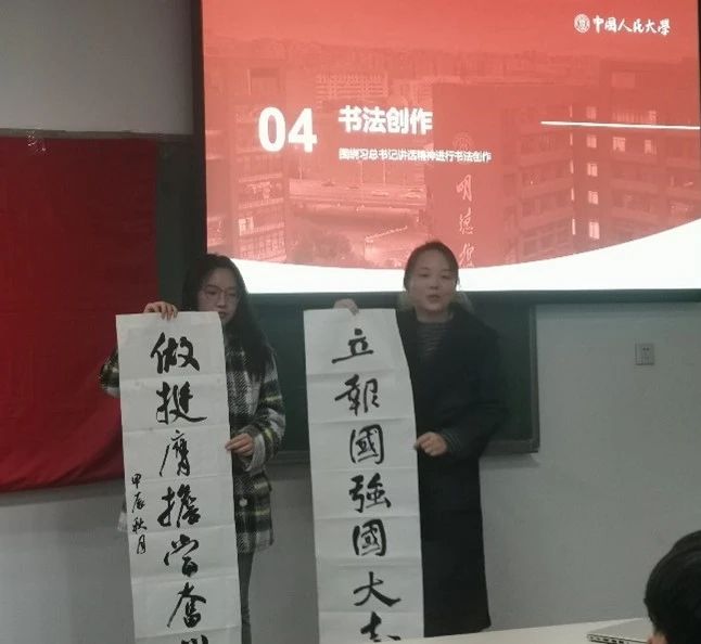 本次“翰墨书丹心——学习习近平总书记重要讲话精神”联合党日活动通过嘉宾讲解、同学讨论、视频学习、书法创作等方式,生动而有特色地学习了习近平总书记在全国教育大会和庆祝全国人民代表大会成立70周年大会上的重要讲话精神,加深了对习近平新时代中国特色社会主义思想的认识。