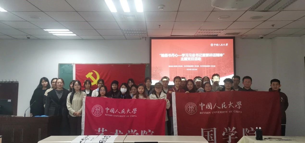 绘画系学生第一、第二党支部和国学院2024级硕士生党支部于2024年10月26日晚在国学馆B110联合开展“翰墨书丹心——学习习近平总书记重要讲话精神”党日活动。