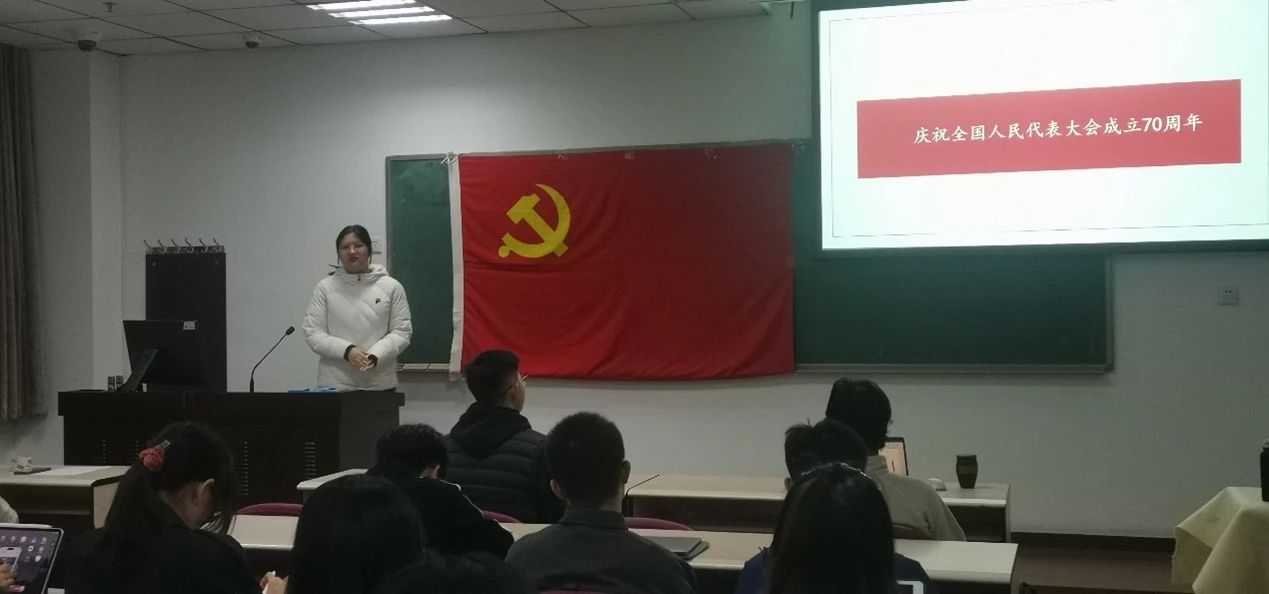 魏晓阳老师与李逸飞同学于9月14日上午在人民大会堂参加了庆祝全国人民代表大会成立70周年大会,现场聆听了习近平总书记发表的重要讲话。党日活动中,魏晓阳老师分享了自己参加此次大会及此前参加中华人民共和国成立70周年、中国共产党成立100周年庆祝活动和北京冬奥会服务工作的经历;李逸飞同学通过《大国风华人民记忆》纪录片片段,向同学们展示了第一届全国人民代表大会的开展过程,并带领同学们认真学习了习近平总书记在庆祝全国人民代表大会成立70周年大会上的重要讲话精神。