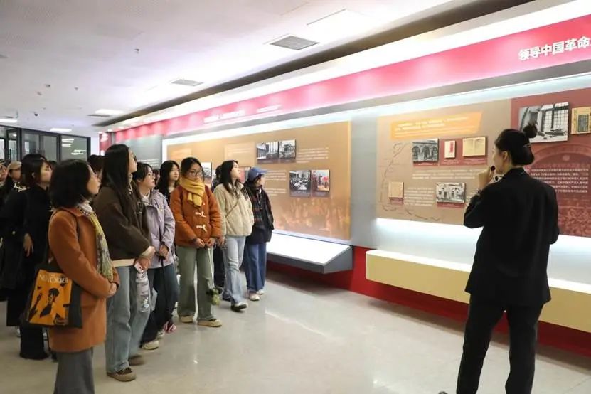 随后,师生党员和入党积极分子一同参观了《延安十三年与中国式现代化》主题展览。展览主要记录了延安十三年中国共产党由小变大、由弱到强、从低谷走向高峰的历程。这期间,中国共产党不仅领导人民夺取抗日战争伟大胜利、实现解放战争战略转折,而且创造性地开展中国式现代化的理论与实践探索,留下了极为宝贵的思想财富和精神力量。老师和同学们认真观看展览,不时驻足阅读图文资料,用心感受那段波澜壮阔的历史。比如,通过展览中展出的1947年王式廓创作的《改造二流子》套色木刻作品,大家深刻体会到陕甘宁边区为建设模范的新民主主义社会采取了一系列举措,推进社会改造和建设事业,大力开展社会改造,革除社会恶习,破除封建迷信,提倡科学知识,维护社会稳定,净化社会风气,使整个边区的社会风气和民众精神面貌得到了根本改变,为新中国社会主义建设事业积累了丰富的经验。