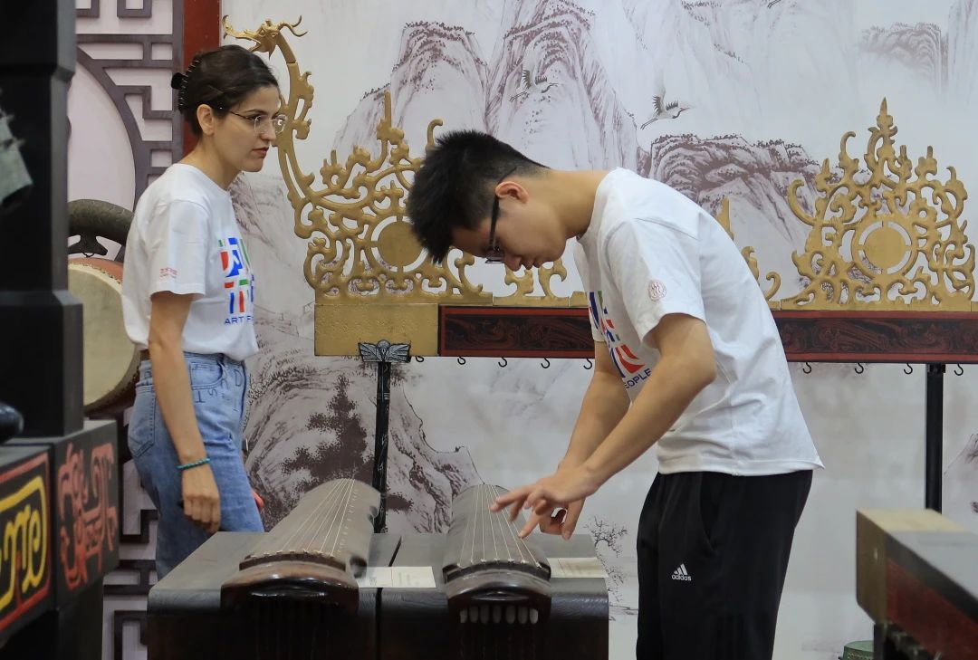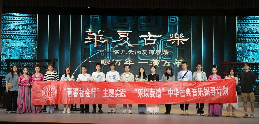 随后,实践团队聆听华夏古乐团使用复原古乐器演奏的音乐会。先秦礼乐的神秘庄重,《梅花三弄》的典雅悠长,《高山流水》的意境深远,无不展现着中华古乐的独特魅力。而古乐器演奏的流行曲目《孤勇者》,则以大胆创新的方式证明了传统音乐的生命力,赢得全场喝彩。演出结束后,团队师生与表演人员进行交流、学习,体验古乐器的魅力。