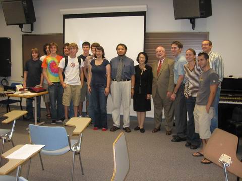 赵方教授讲课后与作曲系主任及学生合影