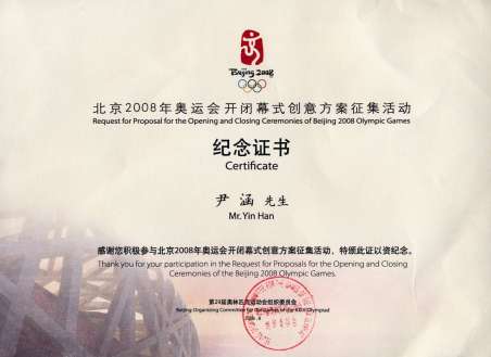 奥组委纪念证书