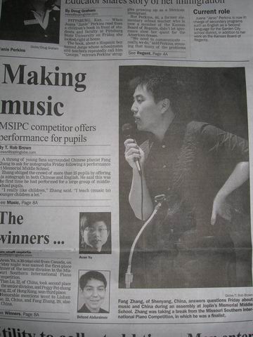 「第十二届南密苏里国际钢琴大赛」于2008年4月21日至4月26日在美国南密苏里州大学举行,吸引过百名来自世界各地的年轻钢琴好手报名参加初选。为期五天的赛事分准决赛及总决赛进行。五人小组评判团在准决赛的二十名来自韩国、美国、俄罗斯、中国、日本、保加利亚、台湾、加拿大、北爱尔兰及香港的准决赛选手中,挑选五人进入总决赛,再从中选出冠、亚、季军和荣誉奖。