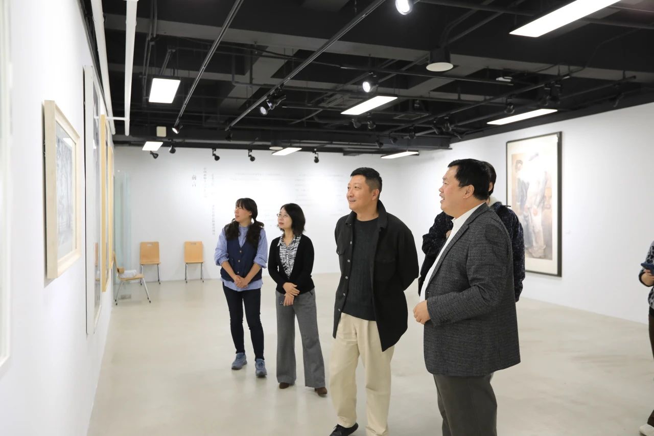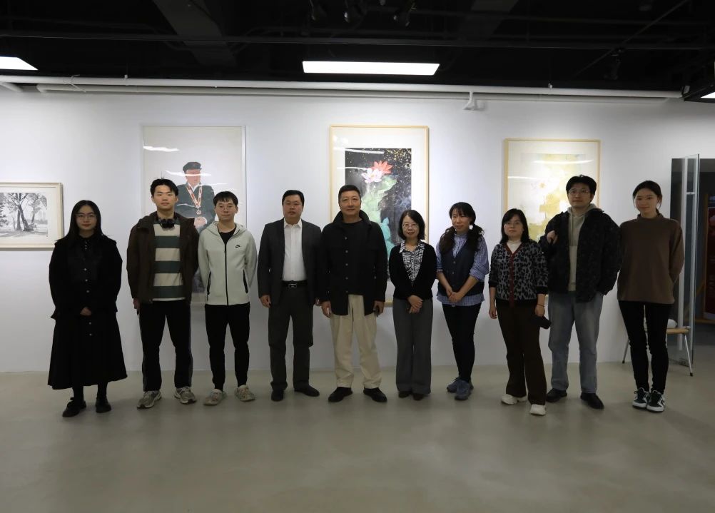 绘画系黄华三、高毅、高远等师生代表,策展人吴冰老师引导参观并做了课程与作品的介绍。